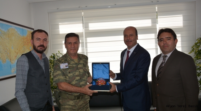 Şuhut Belediye Başkanı Recep bozkurt Afyonkarahisar İkmal ve garnizon Komutanlığına Atanan Tuğg. Osman Alp’e Hayırlı Olsun Ziyaretinde Bulundu.