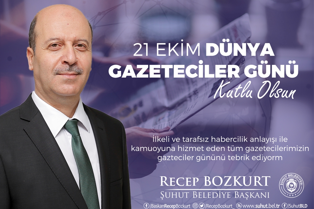 Şuhut Belediye Başkanı Recep Bozkurt 21 Ekim Dünya Gzeteciler günü dolayısıyla bir mesaj yayımladı.