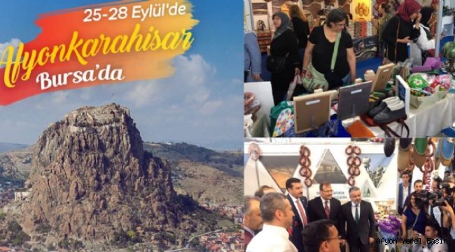 25 - 28 Eylül tarihleri arasında Merinos AKKM Fuar Alanı'nda düzenlenen fuarın en gözde standı, Afyonkarahisar Belediyesi’nin tanıtım standı oldu. Bursa protokolünün yanı sıra fuara katılan illerin valileri, belediye başkanları ve temsilcilerinin büyük ilgi gösterdiği standa ilimizin tarihi, kültürü, doğal güzellikleri ve turizmi en güzel şekilde tanıtılıyor. Yöresel ikramlarında yapıldığı stanta misafirlere tanıtım broşürleri dağıtılıyor. Belediye Başkanı Mehmet Zeybek, bu tür tanıtım faaliyetleri ile ekonomik anlamda şehrimize katkı sağlamayı hedeflediklerini söyleyerek “Afyonkarahisar tarihi, kültür ve doğal güzellikleri ile ülke turizminde önemli bir yere sahiptir. ” dedi.