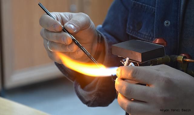 Afyonkarahisar'da Emirdağ Halk Eğitim Merkezi'nin cam atölyesinde eğitim alarak biblo ve hediyelik eşya üreten kadınlar, bu sayede hem sosyalleşiyorlar hem de meslek sahibi oluyor.