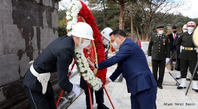 Tarihin akışını, Türk Milletinin kaderini değiştiren, vatanın bütünlüğü, milletin egemenlik ve bağımsızlığı söz konusu olduğunda, Türk milletinin neleri başarabileceğinin en güzel kanıtı olan 18 Mart Şehitleri Anma Günü ve Çanakkale Deniz Zaferi'nin 106’ıncı yıl dönümü dolayısıyla Vali Gökmen Çiçek’in katılımıyla anma töreni düzenlendi.Kocatepe Asri Mezarlığı içerisinde bulunan Hava Şehitliğinde gerçekleştirilen anma töreninde Vali Gökmen Çiçek, İkmal ve Garnizon Komutanı Tuğg. Osman Alp, Belediye Başkan Mehmet Zeybek ve Türkiye Harp Malulü Gaziler, Şehit Dul ve Yetimleri Derneği Şube Başkanı Emre Öztürk tarafından Şehitliğe çelenkler sunuldu.Saygı duruşunda bulunulması ve İstiklal Marşının okunmasının ardından askeri manga tarafından saygı atışı yapıldı. Törende Öğ. Üstğm. Gülsün Kılıç Akın tarafından 18 Mart Çanakkale Zaferi’nin askeri ve stratejik önemini içeren bir konuşma yapıldı.Ardından Vali Gökmen Çiçek Şehitlik Özel Defteri’ni imzaladı.Din görevlileri Osman Aykan ve Veysel Yüksel tarafından Kur’an-ı Kerim tilavetinin sunulması ve İl Müftüsü Sinan Kazancı’nın ettiği duanın sonrasında şehitlikler ziyaret edildi. Vali Gökmen Çiçek ile protokol üyeleri kahraman şehitlerimizin kabirlerine karanfiller bıraktı.18 Mart Şehitleri Anma Günü ve Çanakkale Deniz Zaferi'nin 106’ıncı yıldönümü dolayısıyla Vali Gökmen Çiçek ve il protokolü Türkiye Harp Malulü Gaziler Şehit Dul ve Yetimleri Derneği Afyonkarahisar Şubesi’ne ziyarette bulunarak, dernek üyesi şehit aileleri ve gazilerle bir araya geldi.Vali Gökmen Çiçek ve beraberinde protokol üyeleri Dernek Başkanı Emre Öztürk, şehit aileleri ve gaziler tarafından karşılandı. Şehit yakınları ve gazilerle sohbette bulunuldu.Anma programına Vali Gökmen Çiçek, Milletvekili Burcu Köksal, İkmal ve Garnizon Komutanı Tuğg. Osman Alp, Belediye Başkanı Mehmet Zeybek, Cumhuriyet Başsavcısı Mustafa Çelenk, Türkiye Harp Malulü Gaziler, Şehit Dul ve Yetimleri Derneği Afyonkarahisar Şube Başkanı Emre Öztürk, gaziler, askeri erkân, siyasi parti temsilcileri ve bazı il müdürleri katıldı.18 Mart Şehitleri Anma Günü münasebetiyle İmaret Camii'de şehitler için Mevlit Programı düzenlendi. Kur’an-ı Kerim tilaveti ve yapılan duaların ardından mevlit programı sona erdi.