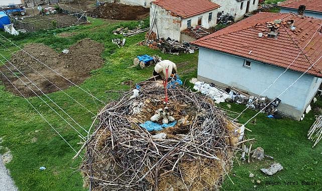 Çay'da yuvası yanan leylek yeni yuva yaptı