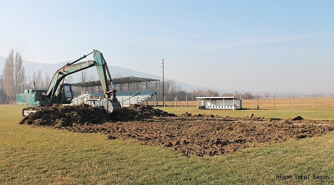 Çay ilçesi Ali Kaleli Spor Tesislerinde sentetik çim saha yapım çalışmaları başladı.