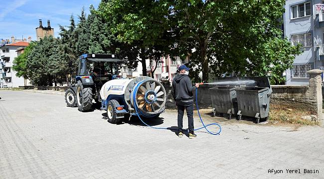 Çay Belediyesi tarafından ilçe içerisindeki çöp konteynerlerinde ilaçlama çalışmaları yapılıyor.