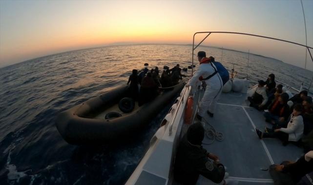 İzmir'in Çeşme ilçesi açıklarında yasa dışı yollarla yurt dışına çıkmaya çalışan 31 düzensiz göçmen yakalandı.Sahil Güvenlik Komutanlığının internet sitesinde yer alan açıklamaya göre, ilçe açıklarında lastik botta bir grup düzensiz göçmen olduğu bilgisi üzerine bölgeye Sahil Güvenlik botu yönlendirildi.Ekipler, lastik bottu durdurup 31 düzensiz göçmeni karaya çıkardı.Düzensiz göçmenler, işlemlerinin ardından İl Göç İdaresi Müdürlüğüne gönderildi.