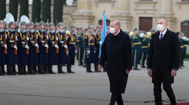 Cumhurbaşkanı Recep Tayyip Erdoğan, resmi ziyarette bulunduğu Azerbaycan'da, Azerbaycan Cumhurbaşkanı İlham Aliyev tarafından resmi törenle karşılandı.