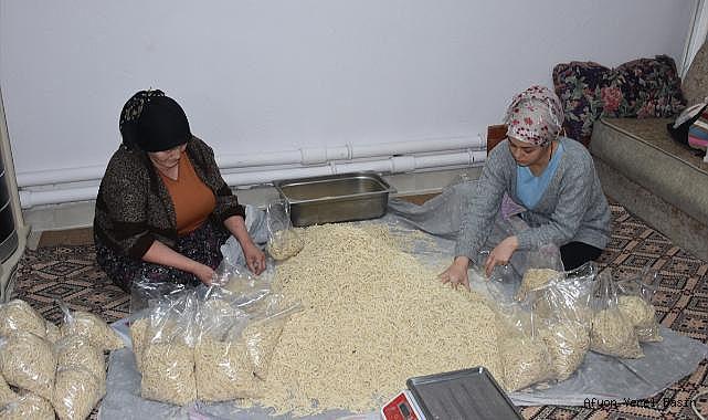 Afyonkarahisar'ın Sinanpaşa ilçesinde Kadın Kültür Evi'nde çalışan kadınlar ve gönüllülerin desteğiyle hazırlanan erişteler, ramazan için deprem bölgesine gönderilecek.