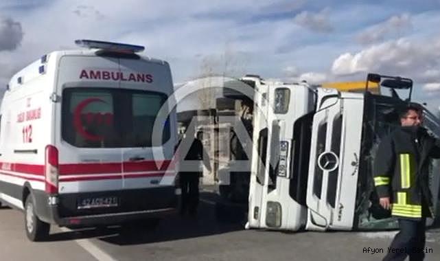 Mehmet Tuna idaresindeki 38 TK 062 plakalı kamış yüklü tır, Konya-Afyonkarahisar kara yolunun 55. kilometresinde karşı şeride geçerek devrildi.