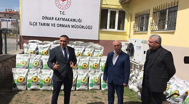 Dinar'da 113 Çiftçiye 2500 dekar alanda %50 hibeli yağlık ayçiçeği tohumu dağıtıldı