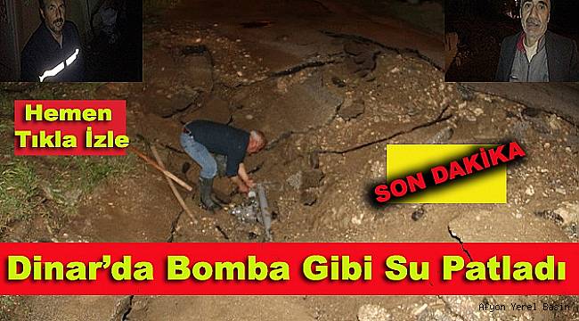 Dinar’da patlayan su hattı borusu nedeniyle bazı evlerin zemin ve bodrum katlarını su bastı. Vatandaşlar evlerine dolan suyu tahliye için yoğun çaba harcadı.Atatürk Mahallesi Ciritoğlu Sokak’ta gece saat: 02:00 sıralarında su hattı borusu patladı. Ciritoğlu Sokağında ki bir besihanenin ve bazı evlerin zemin ve bodrum katlarını su bastı.Bomba gibi patlayan su yolu savaş alanına döndürdüİhbar üzerine gelen belediye su arza ve itfaiye ekipleri patlayan boruya müdahale etti. İtfaiye ekipleri ile vatandaşlar evlerine dolan suyu tahliye için çaba harcadı.