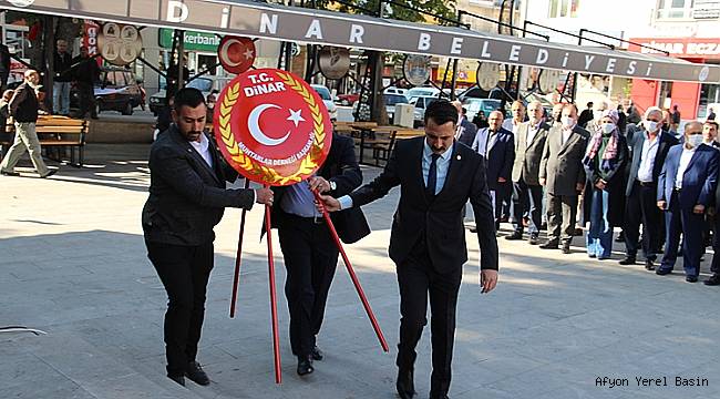 Çelenk koyma programında bir konuşma yapan Muhtarlar Derneği Başkanı ve İstasyon Mahallesi Muhtarı Mehmet Gürpınar, "Muhtarlık müessesesi ilk olarak Osmanlı padişahı ikinci Mahmut döneminde 19 Ekim 1829 yılında Faaliyetlerine başlamıştır. Yıllardır da hizmet makamı olarak faaliyetlerine devam etmektedir. Muhtarlarimız yerel demokrasinin en eski örneğini temsil etmektedir. Bir yandan köyü ve mahalle sakinlerinin devlet kurumları ile ilişkilerinde aracı bir rol oynarken, diğer yandan da çağdaş kamu yönetimi anlayışının en temel gereksinimlerinden biri olan katılımcıların sağlanmasında önemli bir görevi yerine getirmektedir. Seçimle göreve gelen muhtarlarımız vatandaşlarımızın kendilerine inanması ile göreve gelmektedir. Bizler Dinar’ımızın seçilmiş muhtarlari olarak başkanlığını yürütmekte olduğum dinar muhtarlar derneği çatısı altında sosyo-kültürel olarak sağlamış olduğumuz birlik ve beraberlik ile ‘Başka Dinar Yok’ sloganı misyonumuz olarak Dinarımızda siyasi ve etkin etnik ayrım gözetmeksizin sadece ve sadece Dinar’ımızın menfaatleri ve hizmet etmek amacıyla Dinar’da bize düşen görevi hiç düşünmeden üstlenerek bu memlekette hizmet vermek amacındayız. Sözlerime son verirken tüm muhtar arkadaşlarımın 19 Ekim muhtarlar gününü kutluyor, bu anlamlı günde bizleri yalnız bırakmayan siz saygıdeğer misafirlerimize teşekkür ediyor saygılar sunuyorum." dedi.