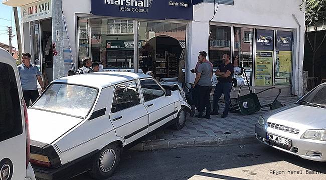 Çarpışmanın etkisiyle kontrolden çıkan S.F.’nun kullandığı 20 LC 032 Plakalı otomobil karşıdaki bir iş yerinin camından içeri girdi.
