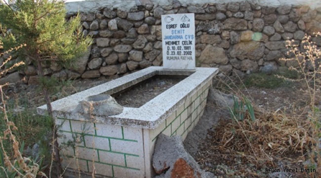 Çağlayan köyünde bizleri köy mezarlığında götüren Şehit Babası Eşref Çelik oğlu Şehit Jandarma Çavuş Mehmet Çelik’in mezarını gösterdi.