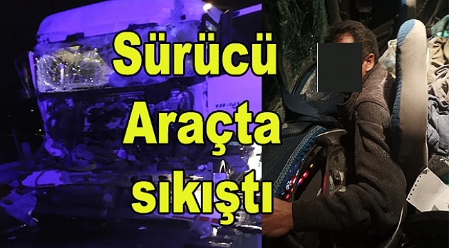 Dinar'da Tır'a Arkadan Çarpan Sürücü Araçta Sıkıştı