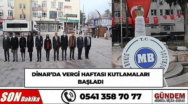 Bu yıl 33'üncüsü düzenlenen vergi haftası kutlamaları kapsamında Dinar Vergi Dairesi tarafından Dinar Cumhuriyet Meydanı'ndaki Atatürk Anıtı'nda çelenk sunma töreni yapıldı.