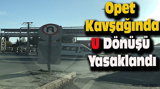 Afyonkarahisar Dinar ilçesi Opet Kavşağına kazaların önlenmesi için yetkililer U dönüşü yasaktır. Levhası taktı.