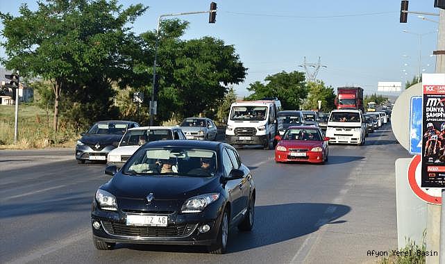 Kurban Bayramı tatili dönüşü için yola çıkan sürücüler, Afyonkarahisar'da trafiğin yoğunlaşmasına neden oldu. Bayram tatilinin ardından dönüşlerin başlamasıyla Antalya, İzmir, Ankara, Konya ve Kütahya kara yollarının birleştiği Afyonkarahisar'daki Çevre Yolu kısmında yer yer trafik yavaşladı.İl Emniyet Müdürlüğü Trafik Şube Müdürlüğü ekipleri, kavşak noktalarda önlem alarak ulaşımda aksama yaşanmaması için çalışmalarını sürdürüyor. Sürücüler aşırı hız ve takip mesafesi konusunda da uyarılıyor.Tatil dönüşü trafik yoğunluğunun sürmesi bekleniyor.