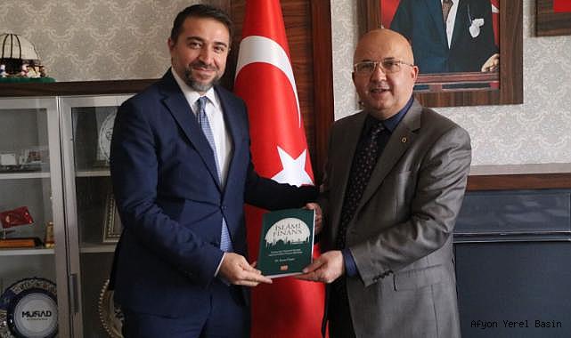 Dr. Ersan Özgür, ziyaret sonunda İGM Başkanı Burhanettin Çoban'a, “İslami Finans” üzerine kaleme aldığını kitabını hediye etti.
