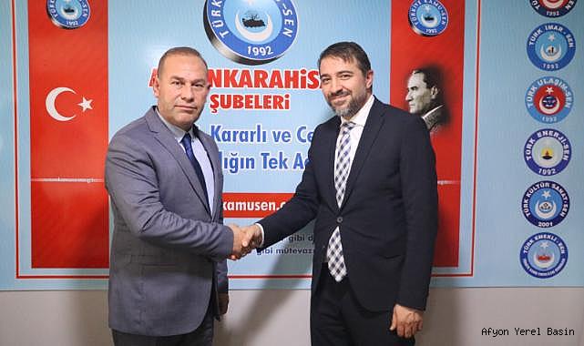 TBMM Kamu Denetçiliği Uzmanı Dr. Ersan Özgür, Türkiye Kamu-Sen Afyonkarahisar İl Temsilcisi Mehmet Ali Öztürk’ü ziyaret etti.
