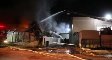 Manisa'da kauçuk fabrikasında çıkan yangına müdahale sürüyor