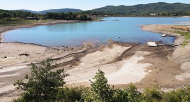 Muğla'daki Ula Göleti'nde su seviyesinin düşmesiyle adacıklar oluştu