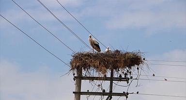Leylekler yıllardır aynı elektrik direğinde konaklıyor
