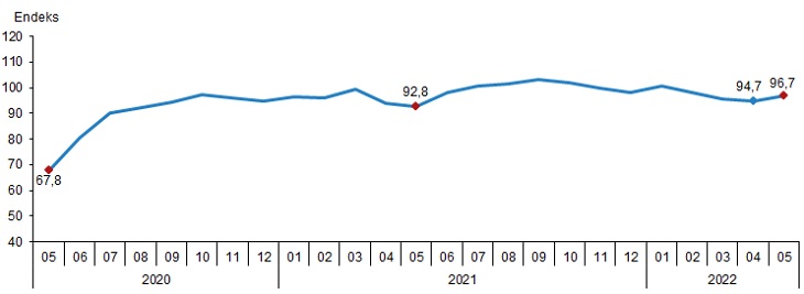 Ekonomik güven endeksi, güven endeksleri ve değişim oranları, Mayıs 2022