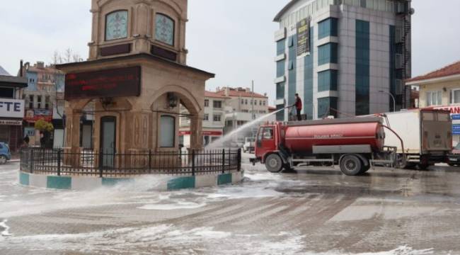 Afyonkarahisar Emirdağ İlçesinde Sabahın erken saatlerinde başlayan dezenfekte çalışmaları gün içerisinde de devam etti.