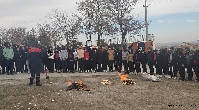 Emirdağ Belediyesi İtfaiye Amirliği'nde görevli personel tarafından Metin Zülbiye Sarı Anadolu Lisesi'nde yangın eğitimi verildi.