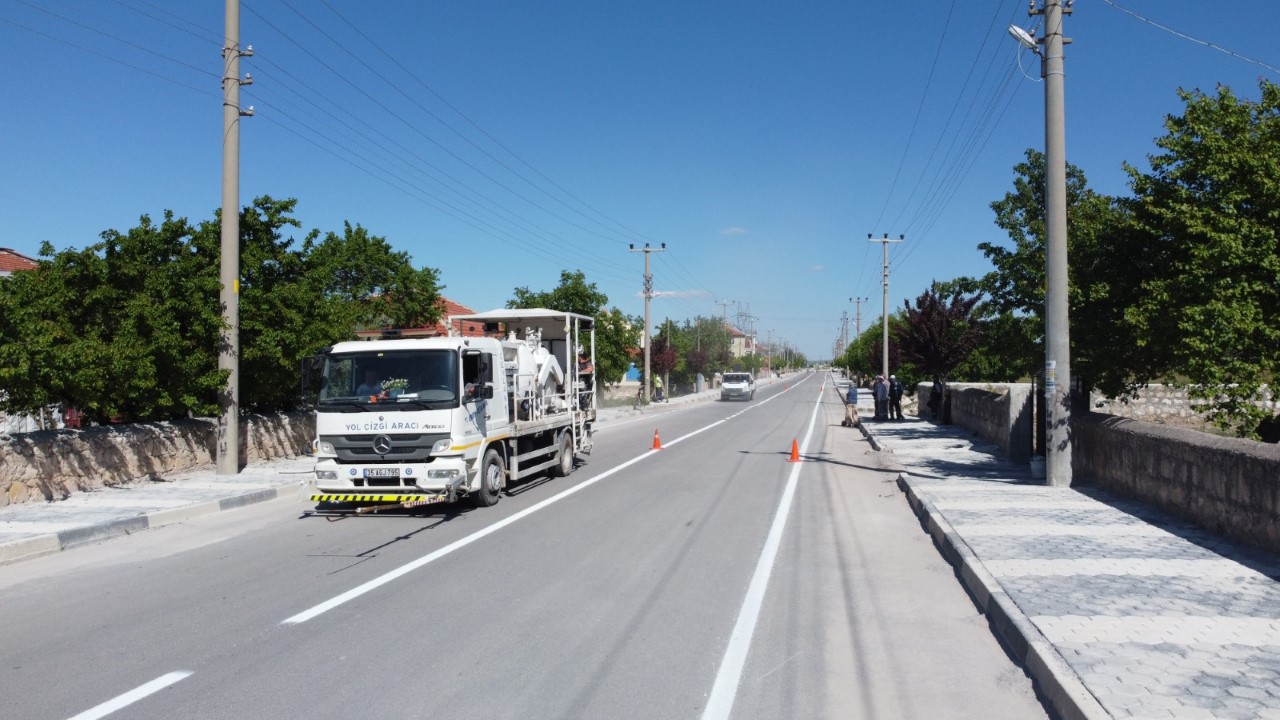 Emirdağ Belediyesi ilçe genelinde onarım ve asfaltı tamamlanan yollarda şerit çizgi ve trafik işaretleme çalışmalarını sürdürüyor.