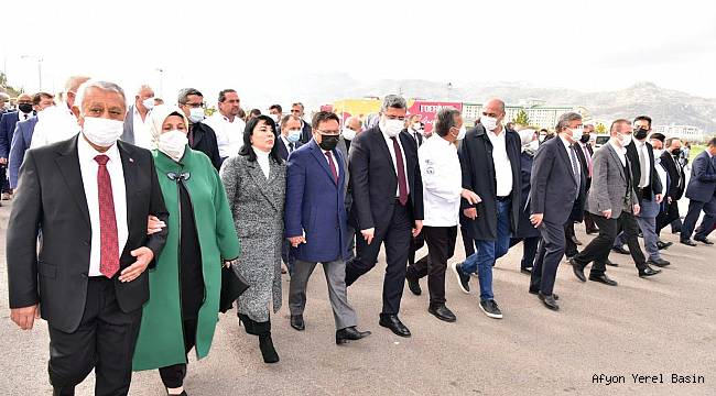 Festivalin açılışına Afyonkarahisar Valisi Gökmen Çiçek ve eşi Sümeyra Çiçek, AK Parti Afyonkarahisar Milletvekilleri Ali Özkaya ve İbrahim Yurdunuseven, Afyonkarahisar Belediye Başkanı Mehmet Zeybek ve eşi Sevim Zeybek, Hatay Büyükşehir Belediye Başkanı Dr. Lütfü Savaş, Afyon Kocatepe Üniversitesi (AKÜ) Rektörü Prof. Dr. Mehmet Karakaş, misafir Büyükelçiler, Türkiye Aşçılar Federasyonu Başkanı Zeki Açıköz, Afyonkarahisar Profesyonel Aşçılar Derneği Başkanı Hamza Kalkan, TV Programcısı Elif Güvendik, Halk Müziğin sevilen ismi Oktay Ertuğrul, Umut Akyürek, Yemek Yazarı Sahrap Soysal, Tiyatro Sanatçısı Erhan Yazıcıoğlu, Türkiye’nin farklı illerinden aşçılar, kaymakamlar, belediye başkanları, kurum müdürleri, STK temsileri, vatandaşlar ve basın mensupları katıldı.Kortej ile başlayan festival; Afyonkarahisarlı şeflerin show sunum gösterileri, yurt dışı misafir ve ulusal katılımcıların takdimi ve görsel sanatlar gösterilerinin ardından mehteran gösterisi yer aldı. Festivalin açış konuşmasını gerçekleştiren Afyonkarahisar Profesyonel Aşçılar Derneği Başkanı Hamza Kalkan festival hakkında bilgiler verdi. Yerel değerlerin korunmasının önemine değinen Türkiye Aşçılar Federasyonu Başkanı Zeki Açıköz de aşçıların işini en iyi şekilde yapmasını ve değerlere sahip çıkması gerektiğini ifade etti.“Gizli kalmış lezzetlerin kitabını çıkaracağız”Açılış töreninde bir konuşma yapan AKÜ Rektörü Prof. Dr. Mehmet Karakaş, gastronomi unvanın elde edilmesi noktasında en başından itibaren paydaş kurumlardan oldukları belirtti. Karakaş, “Üniversite olarak en başından itibaren desteğimiz sürüyor. Üniversitemizde Gastronomi ve Mutfak Sanatları Bölümümüz 2014 yılında kuruldu. Şu anda 600 öğrencimiz var. Öğretim üyelerimiz bu alanda önemli çalışmalar yapıyorlar. Afyonkarahisar’ın gizli kalmış, eski ve yerel lezzetlerinin yer aldığı bir kitabı çok yakında çıkaracağız. TR33 Bölgesinde 2019 yılından itibaren Gastronomi Bölümümüz ilk akredite alan bölüm oldu. Yüksek Lisans programlarımız da açıldı. Afyonkarahisar’ın yemek kültürü konusunda tezler yapılmaya devam edecek” dedi.30’a yakın ürün tescillendiAfyonkarahisar Belediye Başkanı Mehmet Zeybek ise 600’e yakın yöresel üründen 30’a yakın ürünün tescilini aldıklarını belirtti. Zeybek, “35’e yakın ürünümüz tescil bekliyor. İnşallah diğer ürünlerimizi de tescilleyerek Türkiye’de bu alanda tek olmak istiyoruz. Afyonkarahisar’ın gelişmesi için elinden gelen gayreti gösteren Valimize ve Kadın Kültür Evleri projesi ile kadınlarımıza en büyük desteği veren Sayın Hanımefendiye de şükranlarımı sunuyorum. Afyonkarahisar 4 yol kavşağında olan, tarihiyle, mermeriyle ve kültürel değerleriyle adından söz ettiren bir il. Gastronomi unvanı sonrası tüm şehir el ele vererek değerlerimizi ön plana çıkarmak istedik. Afyonkarahisar milattan önce 3 bin yıla dayanan bir tarihi geçmişe sahip, birçok medeniyete ev sahipliği yapmış bir şehir” diye konuştu.“Afyonkarahisar’ın Dünyaya Tanıtılması Noktasında Önemli Bir Festival”Afyonkarahisar Milletvekili İbrahim Yurdunuseven ise konuşmasında Afyonkarahisar’ın 600’e yakın yöresel ürünüyle bir Gastronomi Şehri olduğunu dile getirdi. Yurdunuseven, “Afyonkarahisar’ın dünyaya tanıtılması noktasında çok önemli bir festival. Biz aynı zamanda bir kültür ve gastronomi şehriyiz. Kültürel anlamda Frig Vadisi, Akdağ’ı, Ampemia ve Amorium ile tam bir kültür şehri. Türkiye’de tek olan Yumurta Sanatları Müzemiz ve Alimoğlu Müzik Müzemiz var. Tüm ziyaretçilerin bu müzeleri de ziyaret etmelerini istiyor, katılımlarınız için hepinize ayrı ayrı şükranlarımı sunuyorum” dedi.“Gastronomi Unvanını Hakkıyla Hak Eden Bir Şehir”Milletvekili Ali Özkaya ise Afyonkarahisar’ın Gastronomi unvanını hakkıyla hak eden bir şehir olduğunu ifade etti. Özkaya, “Türkiye’de temiz ve lezzetli, lezzet konusunda belki de ender şehirlerden birisiyiz. Bizim otellerimiz ve ikramlarımız gerçekten benzersiz. Festivalde emeği geçen herkese ayrı ayrı teşekkür ediyorum. Hoş geldiniz, sefa verdiniz” dedi.“Elimden Gelen Desteği Vermeye Devam Edeceğim”Afyonkarahisar Valisi Gökmen Çiçek Afyonkarahisar’ın UNESCO Gastronomi unvanı alabilmek için çok mücadele ettiğini belirtti. Çiçek, “Bu unvanı kazandıran Vali olmak isterdim. Fakat bu hikâyenin kahramanı ben değilim. Bir önceki Valimize, Belediye Başkanımıza ve şu anki Belediye Başkanımıza teşekkür ediyorum. Aynı zamanda Milletvekillerimize teşekkür ediyorum. Bu unvanı her zaman en önde tuttular. Biz zaman zaman yalnız bıraktık ama tek başına bu işi başarıyla götürüyor. Gastronomi farklı bir dünya. Bende Afyonkarahisar’da bu unvana ve bu dünyaya alışıyor ve öğrenmeye çalışıyorum. Bundan sonraki süreçte de elimden gelen desteği vermeye devam edeceğim” dedi.Festival; konuşmaların ardından protokol üyeleri stantları ziyaret etmesi ve ev hanımlarının da yarışmalarla hünerlerini sergilemesiyle devam etti. Afyonkarahisar Coğrafi İşaretli Ürünler Sergisinin, Afyonkarahisar Yemekleri Fotoğraf Sergisini de ziyaret eden protokol üyeleri, Afyonkarahisar mutfağının eşsiz lezzetlerini katılımcılara ikram etti.Yapılan duanın ardından dev kazanda aşure dağıtımı yapıldı. Festivalin ilk gününde yer alan “40 Kazan Afyon Yemekleri Show gösterisi, Dana Çevirme Gösterisi ve Profiterol Şelalesi gösterilerinin yer aldığı festivalde, Frig Vadisi Görseli El Sanatları Gösterisi ile 100 Kilogram Lokumdan Türk Bayrağı Gösterisi” ise büyük ilgi gördü.Festivalin öğleden sonraki programında AKÜ Turizm Fakültesi Dekanı Prof. Dr.