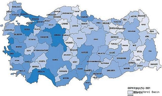 İl düzeyinde cari fiyatlarla GSYH hesaplamalarına göre; 2021 yılında İstanbul 2 trilyon 202 milyar 156 milyon TL ile en yüksek GSYH'ye ulaştı ve toplam GSYH'den %30,4 pay aldı. İstanbul'u, 667 milyar 142 milyon TL ve %9,2 pay ile Ankara, 462 milyar 152 milyon TL ve %6,4 pay ile İzmir izledi. İl düzeyinde GSYH hesaplarında son üç sırada 6 milyar 99 milyon TL ile Tunceli, 4 milyar 968 milyon TL ile Ardahan ve 3 milyar 861 milyon TL ile Bayburt yer aldı.
