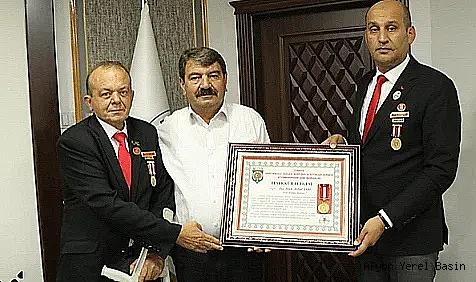 Türkiye Harp Malulü Gaziler Şehit, Dul ve Yetimleri Derneği İl Başkanı İsmail Kumartaşlı Belediye Başkanımız Nihat Sarı’ya dernek teşekkür beratı ve madalyasını takdim ederken, Derneğin Dinar Temsilcisi Hasan Ceylan ve Türkiye Muharip Gaziler Derneği Dinar Temsilcisi Tevfik Kılıçkaya da tablo takdim etti. Dinar Gündem Gazetesi