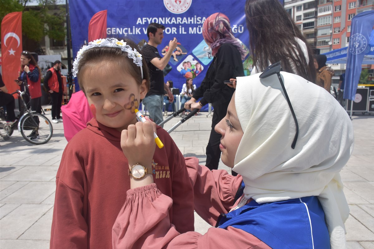 Her yıl 15 – 21 Mayıs tarihleri arasında gerçekleştirilen Gençlik Haftası kutlamaları Kocatepe Anıtına Çelenk sunumu ile başladı. Afyonkarahisar Gençlik ve Spor İl Müdürü Feyzullah Dereci, Kocatepe Anıtına çelenk koyarak saygı duruşunda bulundu. Çelenk Sunma töreni saygı duruşunda bulunulması ve istiklal marşının okunmasının ardından tamamlandı. Sosyal Medyadan Sosyal MeydanaÇelenk sunma törenin ardından Gençler Zafer meydanında bir araya geldi. Gençler, yıl boyunca Gençlik Merkezlerinde yapılan sosyal, kültürel, sportif ve sanatsal etkinleri takip etti. Halk Eğitim Merkezi Müdürlüğü eğitmenleri tarafından Gençlik Merkezlerinde açılan ipek koza, rölyef, amigurumi, sepet yapımı, ebru, hüsnü hat, resim ve desen kurslarında kursiyerlerin yaptığı el emeği çalışmalar sergilendi. Aynı zamanda Yeşilay, Kızılay ve Siberay’da sergi açarak gençleri bilgilendirdi. Zafer Meydanı'nda coşkuyla kutlanan Gençlik Haftası etkinliklerini ve açılan sergileri, Vali Yardımcıları Nurullah Kaya, Mehmet Keklik ve Mehmet Boztepe, Afyonkarahisar Belediye Başkanı Mehmet Zeybek, eşi Sevim Zeybek ve Belediye Başkan Yardımcısı Süleyman Karakuş ziyaret etti. Sergileri inceleyerek öğrencilerle sohbet eden Vali Yardımları Gençlik Haftası rozetlerini takarak gençlerle hatıra fotoğrafı çektirdi.Sergileri gezen Başkan Zeybek, Eğitmen Ömer Faruk Barış tarafından verilen ebru sanatı ile ilgilendi. İpek koza eğitmeni Nazlı Şenay, Sevim Zeybek hanımefendiye kursta oluşturulan el emeği buketi takdim etti. Hafta Boyunca Etkinlikler Devam EdecekSıtkı Aslanhan “Gençlik Psikolojisi” konulu konferansı ile 17 Mayıs saat 19.30’da AKÜ Atatürk Kongre Merkezinde gençlerle bir araya gelecek. Meşalelerle ve Dev Türk Bayrağı ile gençler 18 Mayıs saat 20.30’da Eski Yoğurt pazarı önünde toplanarak Zafer meydanına kadar yürüyecek. Etkinlikler AFSÜ Gençlik Festivali, Bilardo, Dart, Kano, Bisiklet Turu, Ayak Tenisi, Oryantiring Yarışları, satranç ve Tekvando turnuvaları ile AKÜ Bilim, Teknoloji, Kültür ve Sanat Festivalleri ile devam edecek.