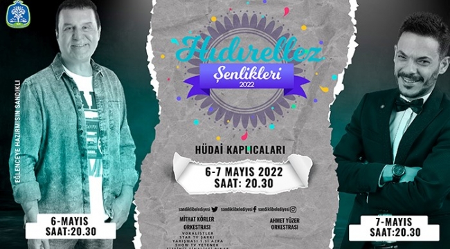 Sandıklı İlçemizde her yıl geleneksel olarak kutlanan “Hıdırellez Etkinlikleri” 6-7-8 Mayıs tarihlerinde Sandıklı Hüdai Kaplıcalarımızda siz değerli hemşehrilerimizin katılımıyla dolu dolu düzenlenecek.