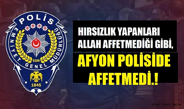 Afyonkarahisar İl Emniyet Müdürlüğü görevlilerince ilimizde meydana gelen Hırsızlık olayları ile ilgili yapılan çalışmalarda, 06.05.2022 günü müracaatta bulunan R.Ç.U. isimli şahıs Menot, Vana ve Sabo adı verilen ve miktarını tam olarak bilmediği malzemelerinin çalındığını, 18.05.2022 günü müracaatta bulunan İ.Y. isimli şahıs 17.05.2022 günü 4000 TL değerinde bakır kabloların çalındığını, 23.05.2022 günü müracaatta bulunan R.A. isimli şahıs 22.05.2022 ve 23.05.2022 tarihleri arasında yaklaşık 150 kiloluk demir parçalarının çalındığını, 12.05.2022 günü müracaatta bulunan İ.Ş. isimli şahıs 750 adet pano, 50 adet kolon bağlama demiri ve 5-10 adet iskele demirinin çalındığını, 23.03.2022 günü müracaatta bulunan Ö.A. isimli şahıs 22.03.2022 günü kamera kayıt cihazı ve 10.000 TL tutarında parasının çalındığını, 20.05.2022 günü müracaatta bulunan M.Ç. isimli şahıs 20.05.2022 günü paslanmaz demirden yapılmış kömürlü mangal haznenin çalındığını beyan ederek şikâyetçi olmuştur. Bahse konu olaylar ile ilgili yapılan kamera incelemesi ve saha araştırmalarında olayı gerçekleştiren şahısların; O.Y., A.E., H.G., P.G., O.A., A.G. olduğu tespit edilmiş, 26/05/2022 günü O.Y., A.E., H.G. ve P.G. isimli şahıslar ikametlerinde yapılan eş zamanlı planlama ile yakalanarak gözaltına alınmış, O.A. ve A.G. isimli şahısların ise yakalanmasına yönelik çalışmalar devam etmektedir.
