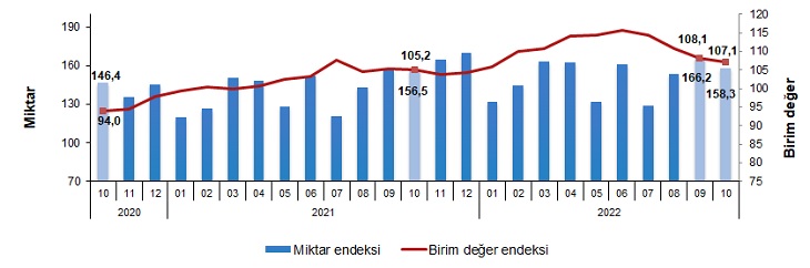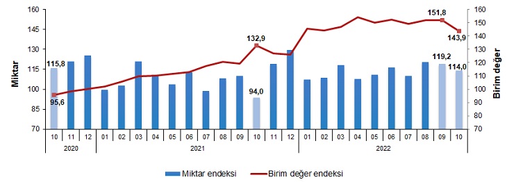 İhracat birim değer ve miktar endeksleri, Ekim 2022