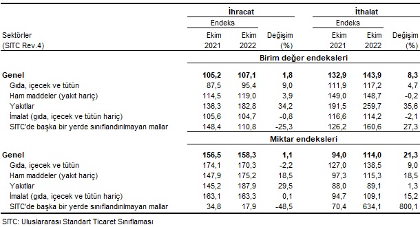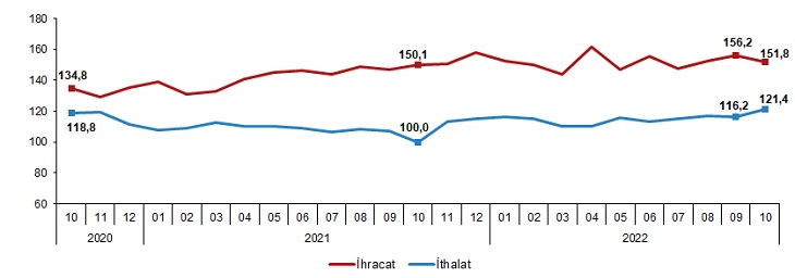 Dış ticaret endeksleri, Ekim 2022