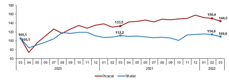 Dış ticaret hadleri, Mart 2022