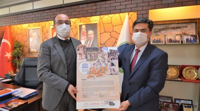Afyonkarahisar İl Kültür Turizm Müdürü Mehmet Tanır, Başkan Mustafa Çöl’ü makamında ziyaret ederek kendilerine “2021 Frigya Takvimi” hediye ettiler.