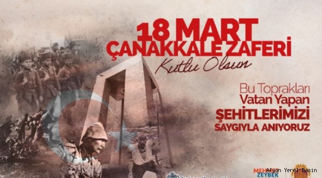 Belediye Başkanımız Mehmet Zeybek; Çanakkale Deniz Zaferi'nin 106.’ncı yıldönümü ve 18 Mart Şehitler Günü dolayısıyla bir mesaj yayınladı.