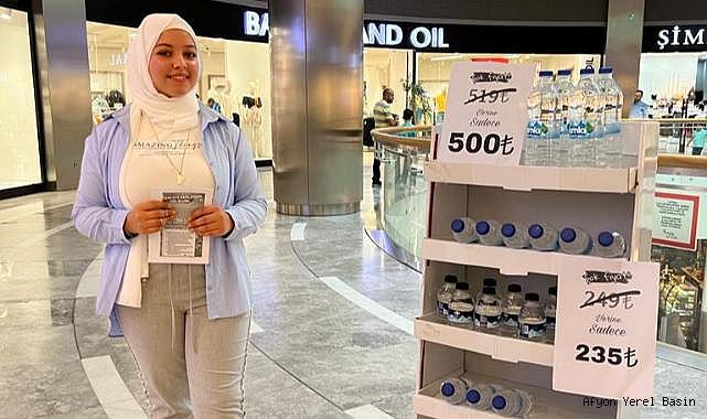 Cumhuriyet Anadolu Lisesi son sınıf öğrencisi Iraklı Rawaa Qays, Sınıf Öğretmeni Güneş Soybilgen ile birlikte su tasarrufuna dikkat çekmek için Park Afyon'da stand açarak broşür dağıttı.