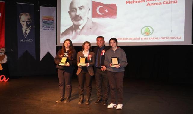Marmaris ilçesinde, İstiklal Marşı'nın Kabulü ve Mehmet Akif Ersoy'u Anma Günü dolayısıyla program düzenlendi.Armutalan Kültür Merkezi'nde düzenlenen ve saygı duruşunda bulunulup İstiklal Marşı okunmasıyla başlayan programda, Beldibi Sıtkı Zaralı İlkokulu/Ortaokulu Müdürü Ali İhsan Damkacı, günün anlam ve önemine belirten konuşma yaptı.Mehmet Akif Ersoy'un hayatını konu alan ve 41 farklı sesten İstiklal Marşı adlı videonun gösterimi yapıldı.Beldibi Sıtkı Zaralı İlkokulu/Ortaokulu öğrencileri milli şair Mehmet Akif Ersoy'un şiirlerini okudu, İstiklal Marşı oratoryosu ve "Ordu Duası" adlı eserini sundu.Marmaris İlçe Milli Eğitim Müdürlüğü tarafından ilkokul, ortaokul ve lise öğrencileri arasında düzenlenen İstiklal Marşı'nı Güzel Okuma Yarışması'nda dereceye giren öğrenciler İstiklal Marşı'nı okudu.Dereceye giren öğrencilere ödülleri protokol üyelerince verildi.Programa Marmaris Kaymakamı Ertuğ Şevket Aksoy, Aksaz Deniz Üs Komutanı Tuğamiral İbrahim Kurtuluş Sevinç, Belediye Başkan Yardımcısı İhsan Öztürk, İlçe Emniyet Müdürü Oktay Kapsız, İlçe Milli Eğitim Müdürü Sibel Kısa, İlçe Jandarma Komutanı Yarbay Murat Çam, kurum müdürleri, veliler ve öğrenciler katıldı.