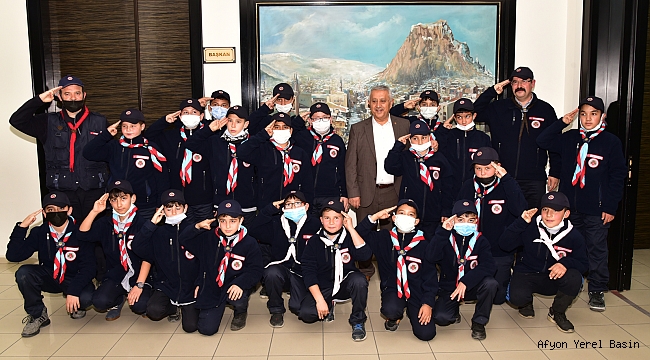 Belediye Başkanı Mehmet Zeybek, mehmet akif ersoy ortaokulu öğrencilerinden oluşan İzci Kulübü’nü makamında kabul etti.