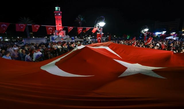 İzmir'de 15 Temmuz Demokrasi ve Milli Birlik Günü dolayısıyla program düzenlendi.İzmir Valiliği tarafından Konak Meydanı'nda düzenlenen programda, saygı duruşunda bulunulması ve İstiklal Marşı'nın okunmasından sonra, Kur'an-ı Kerim tilaveti yapıldı.Vali Yavuz Selim Köşger, programdaki açılış konuşmasında, 15 Temmuz 2016'nın Türkiye için bir milat olduğunu, o kara günde hain bir darbe girişimiyle karşı karşıya kalındığını anımsattı."Bu gözü dönmüş güruh, köprüleri, havalimanlarını, şanlı ordumuzun araç, gereç ve teçhizatlarını gasbederek, milletin uçaklarını, tanklarını, ağır silahlarını yine milletimize karşı kullanarak, hatta millet iradesinin tecelli ettiği Türkiye Büyük Millet Meclisimizi dahi bombalayarak, alçaklıkta sınır tanımamıştır. Asil ve cesur milletimiz Cumhurbaşkanı'mız Recep Tayyip Erdoğan'ın çağrısına kulak vererek tereddüt etmeden sokakları, caddeleri, meydanları doldurmuş, sinesine doğrultulan tanklara, uçaklara, helikopterlere ve namlulara gövdelerini siper etmiştir." dedi.Köşger, 15 Temmuz'un asla unutulmaması gerektiğini sözlerine ekledi.- "Bu devlet de millet de kendisine ortak kabul etmez"AK Parti Genel Başkan Yardımcısı Hamza Dağ da 15 Temmuz destanının 70'inci ve 100'üncü yılda da kutlanacağını söyledi.Cumhurbaşkanı Recep Tayyip Erdoğan'ın çağrısıyla 15 Temmuz 2016'da meydanların dolduğunu anımsatan Dağ, şöyle konuştu:"Ben de o gün Adana'da bundan daha fazla kalabalıkla meydanlardaydım. Herkes meydanlara çıktı ve 15 Temmuz günü millet için bir şeref madalyasıdır. O gün FETÖ ayağa kalkmış olabilir ama bu ülkeye FETÖ'sünden PYD'sine, PKK'sından DAEŞ'ine her biri saldırı yaptı. Cumhurbaşkanı'mızın dediği gibi başaramadınız, başaramayacaksınız. Bir de şunu herkes bilsin. Bu devlet de millet de kendisine ortak kabul etmez. Ortak olmaya çalıştılar, millet cezasını verdi. Birileri de yine ortak olma derdiyle kendilerini dertlendirmesinler. Bu millet, bu devlet 2-3 bin yıldan beri var. Bundan sonra da var olmaya devam edecek. Hep birlikte bunun için çalışmaya devam edeceğiz."Eski Gençlik ve Spor Bakanı Mehmet Muharrem Kasapoğlu ise 15 Temmuz'un bu vatan için gövdesini siper edenlerin günü olduğunu söyledi.15 Temmuz'da FETÖ'nün tuzak kurduğunu belirten Kasapoğlu, "Onlar asıl planlayıcının Allah olduğunu unuttular. Rabbimizin inayetiyle o planları bozduk. FETÖ ihanet şebekesi ve onun işbirlikçileri içeride ve dışarıda bu milleti bölmek için bu bayrağı indirmek için gayret gösterdiler. Bu ülke gençlerinin, kadınlarının öncülüğünde 85 milyon, Cumhurbaşkanı'mızın liderliğiyle bu destanı yazdı." dedi.AK Parti Gençlik Kolları Genel Başkanı ve İzmir Milletvekili Eyyüp Kadir İnan da Türkiye'de 15 Temmuz'da büyük bir işgal girişimi yaşadığını kaydetti.Yaşananları gençler olarak nesilden nesile aktaracaklarını ifade eden İnan, "Bu millete namlusunu çevirip 'vur' emri veren şeref yoksunlarıyla hesaplaşmamız hiçbir zaman bitmeyecek. O gece bu meydanda toplanan değerli İzmirliler, o gece darbeyi siz bastırdınız. Ülkemizi işgal girişiminden sizler kurtardınız. Yüce milletimiz gençleriyle, kadınlarıyla hep birlikte bayrağa, millete, devlete ve demokrasiye sahip çıktı." ifadelerini kullandı.Konuşmaların ardından çeşitli etkinlikler gerçekleştirildi.Programa, AK Parti İzmir Milletvekilleri Yaşar Kırkpınar ve Mahmut Atilla Kaya, AK Parti İzmir İl Başkanı Bilal Saygılı, MHP İzmir İl Başkanı Veysel Şahin, Ege Ordusu ve Garnizon Komutanı Korgeneral Kemal Yeni, İzmir Büyükşehir Belediye Başkan Vekili Mustafa Özuslu ve protokol üyeleri ile çok sayıda vatandaş katıldı.