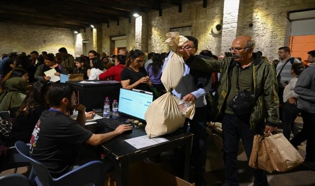 İzmir'de Cumhurbaşkanı ve 28. Dönem Milletvekili Genel Seçimi'nde kullanılan oy pusulalarını torbalarla Konak İlçe Seçim Kurulu'na getiren sandık görevlileri uzun kuyruklar oluşturdu.Okullarda sayımları sona eren oy pusulalarını mühürlü torbalara koyan sandık görevlileri, torbaları teslim etmek üzere ilçe seçim kurullarına getiriyor.Kent genelinde seçim kurulları önünde sandık görevlilerinin bekleyişi sürerken Konak İlçe Seçim Kurulu önünde, yoğunluk oluştu.Konak İlçe Seçim Kurulunun bulunduğu iş hanı önünde kuyruk oluşturan sandık görevlileri, seçim torbalarını teslim işlemlerini sürdürüyor.
