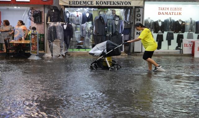İzmir'de sağanak yağış trafikte aksamalara, bazı iş yerlerinde su baskınlarına neden oldu.Kentte, öğle saatlerinde başlayan yağmur yer yer şiddetini artırdı.Bornova, Konak ve Karabağlar ilçelerinde zemin katlarda bulunan bazı iş yerlerini su bastı.Yağış, trafikte aksamalara yol açtı. Tarihi Kemeraltı Çarşısı'nda da sağanak nedeniyle esnaf, suların dükkanlarına girmemesi için süpürge ve çekpas ile önlem aldı.Kentte itfaiye ekipleri, su birikintilerini tahliye etmek için çalışmalarını sürdürüyor.