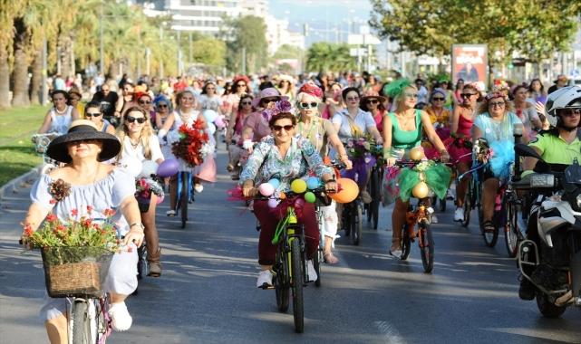 İzmir'de gerçekleştirilen "Süslü Kadınlar Bisiklet Turu"na yaklaşık 4 bin kişi katıldı.Karşıyaka ilçesinde Zühtü Işıl Meydanı'nda bir araya gelen kadınlar, bisiklet turuna buradan başladı. Kadınlar, Mavi Şehir Balıkçı Barınağı önünden dönüp, turu başladıkları meydanda bitirdi.Etkinliğe yaklaşık 4 bin kişi, süsledikleri bisikletleriyle katıldı. Etkinlik yöneticisi Sema Gür, turun ardından yaptığı açıklamada, etkinliğin 32 ülkede ve 200 şehirde eş zamanlı gerçekleştirildiğini belirtti.Etkinliğin, 2013 yılından bu yana, bisikletin günlük hayatın bir parçası olmasına dikkati çekmek amacıyla her yıl düzenli olarak gerçekleştirildiğini aktaran Gür, şunları kaydetti:"İzmir'de bisikletlerimizle yaklaşık 200 kadın yola çıkarken 2022'de bu turun global hale geleceğini ve binlerce kadının ortak dileklerle bisikletleriyle yollarda olacağını hiç düşünmemiştik. Şimdi biz binlerce kadın pedallarımızın itici gücünü tüm toplumda da göstermek istiyoruz. Çocuklarımıza daha temiz ve yaşanabilir dünya bırakmak için elimizden geleni yapmak istiyoruz."