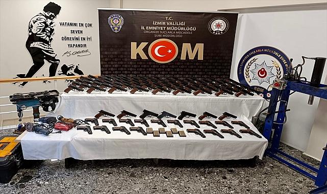 İzmir'de yasa dışı silah imal ve ticareti operasyonunda gözaltına alınan 4 kişi tutuklanırken, 120 kurusıkı tabanca ile silah imalatında kullanılan çok sayıda malzeme ele geçirildi. İl Emniyet Müdürlüğü Organize Suçlarla Mücadele Şubesi ekipleri, kentte yasa dışı silah imalatı ve ticareti yapanlara yönelik çalışma başlattı.Polis, saha ve analiz çalışmaları sonucu belirlediği adreslere düzenlediği baskında S.G, O.E, O.K. ve M.A'yı gözaltına aldı.Şüphelilerin imal ettikleri kurusıkı tabancaların namlularını açarak normal tabancaya dönüştürdükleri atölye, ikamet ve araçlarındaki aramalarda 120 kurusıkı tabanca, 188 şarjör, 3 tabanca, 359 fişek, 99 silah parçası, hidrolik pres makinesi, dremel makinesi, matkap ile silah imalatında kullanılan çok sayıda malzeme ele geçirildi.Gözaltına alınan şüpheliler, emniyetteki işlemlerin ardından adliyeye gönderildi.Zanlılar, S.G, O.E, O.K. ve M.A, sevk edildikleri mahkemece tutuklandı.