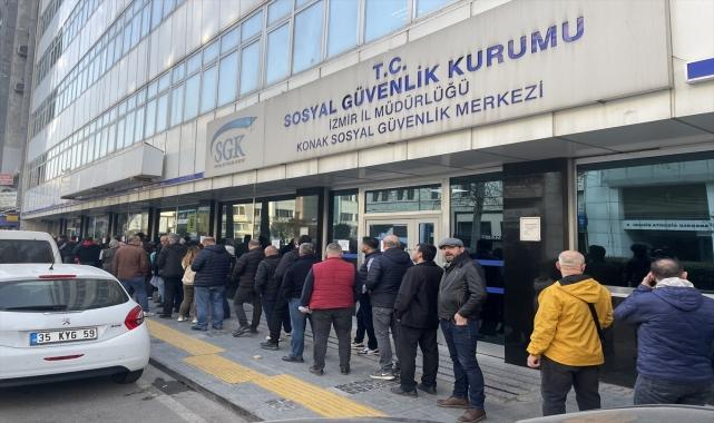 Emeklilikte yaşa takılanlar (EYT) olarak bilinen çalışanlar için yapılan emeklilik düzenlemesinin Resmi Gazete'de yayımlanmasının ardından, Sosyal Güvenlik Kurumu (SGK) İzmir İl Müdürlüğüne bağlı merkezlerin önlerinde yoğunluk oluştu.